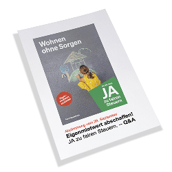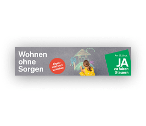 Unterstützen auch Sie die Abschaffung des ungerechten Eigenmietwerts. Nutzen Sie die zur Verfügung gestellten Kampagnenmaterialien zum Download. Material auf Französisch und Italienisch finden Sie mit Klick auf die Sprachkürzel oben rechts.